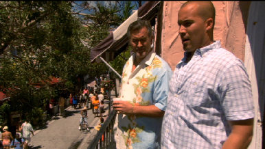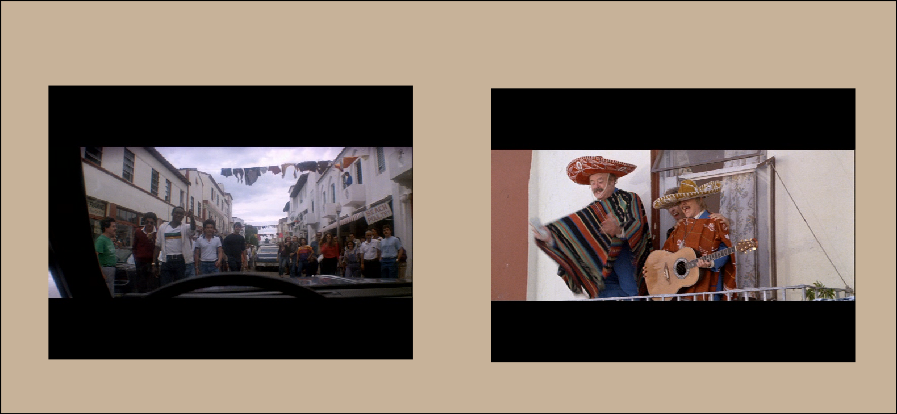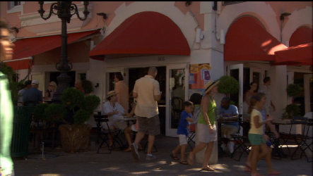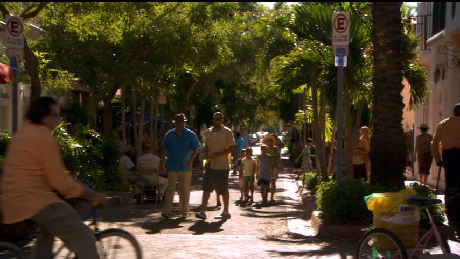 Then we see a split screen of several locations at one time where we see both Espanola Way and stock footage.