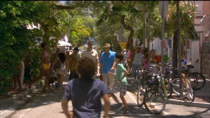 Then we see Sam and Jesse in the D.R., but in reality they are walking down the often used Espanola Way in Miami Beach. When we first see them they are walking westbound toward Drexel Avenue past 436 Espanola Way. This is the exact spot Jackie Gleason stops to ask the nice ladies for directions in the movie Smokey and The Bandit 3.