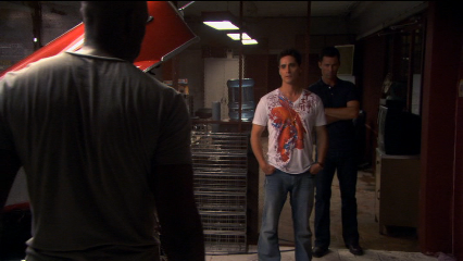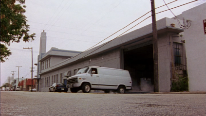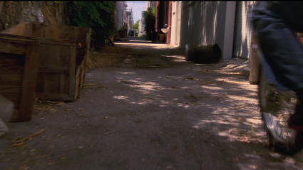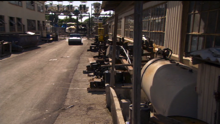 Then we cut to the exterior of Michael’s loft (set at the rear of the studio) where they look for the drugs that are not there.