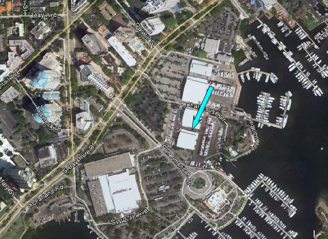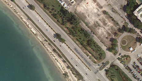 Then we see Michael driving southeast on the Rickenbacker Causeway approaching Mast Academy Drive.