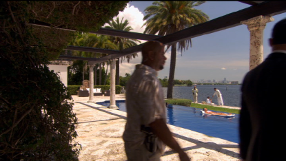 Then we see an aerial establishing shot of 400 South Mashta Drive, Key Biscayne. Fans of the Miami Vice 2006 movie will recognize this house right away as Yero’s house.