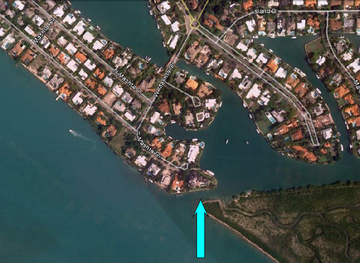 Then we see another exterior establishing shot of 400 S. Mashta Drive, Key Biscayne.