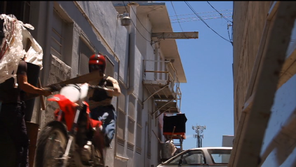 We see the motorcycle westbound on NW 22nd Street away from NW Miami Court. He is passing Whitehall and Shon, 2150 NW Miami Ct. We also saw this building in episode 39, Friendly Fire.