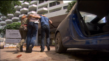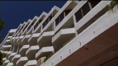 They go inside and treat Jesse’s injury. This was all filmed on location at the Grand Bay Hotel which was closed.