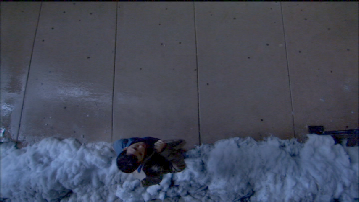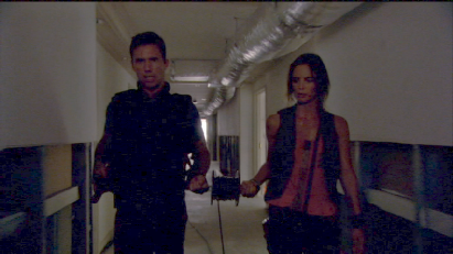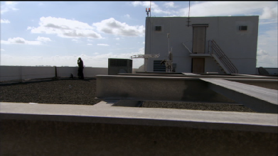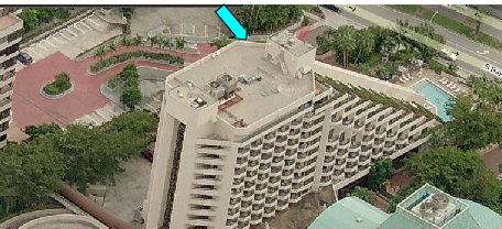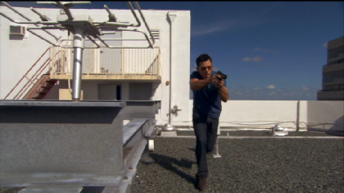 Then we see Michael in action on the roof. This was filmed on location atop the hotel.