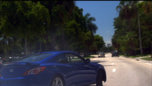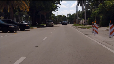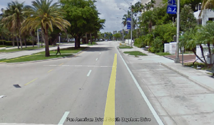After the Charger blocks the two Crown Victorias we see Fiona drift around a corner, fleeing the scene. This was filmed in Coconut Grove. Fiona comes off of Darwin Street onto South Bayshore Drive and heads southwest. This is a popular spot for filming skidding turns as Bucum uses the same location in the movie All About The Benjamins.