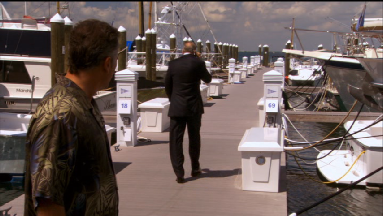 We cut back to the Key Biscayne Yacht Club where Sam convinces Congressman Cowley to go with him.